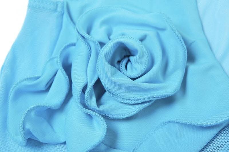 Flower applique v neck mesh patchwork ruched sleeveless mini dress-final-sale
