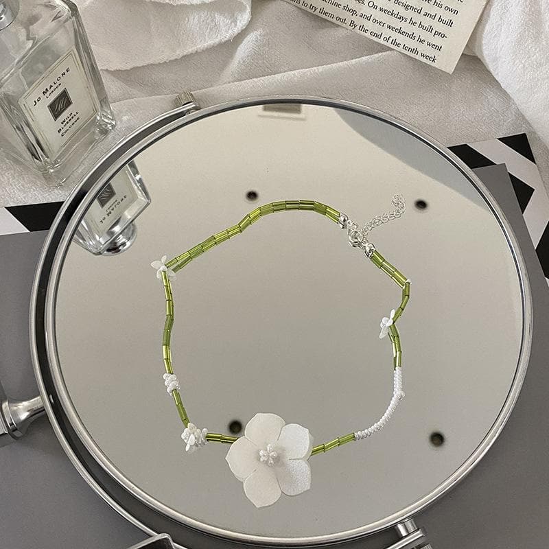 Flower decor beaded chain necklace