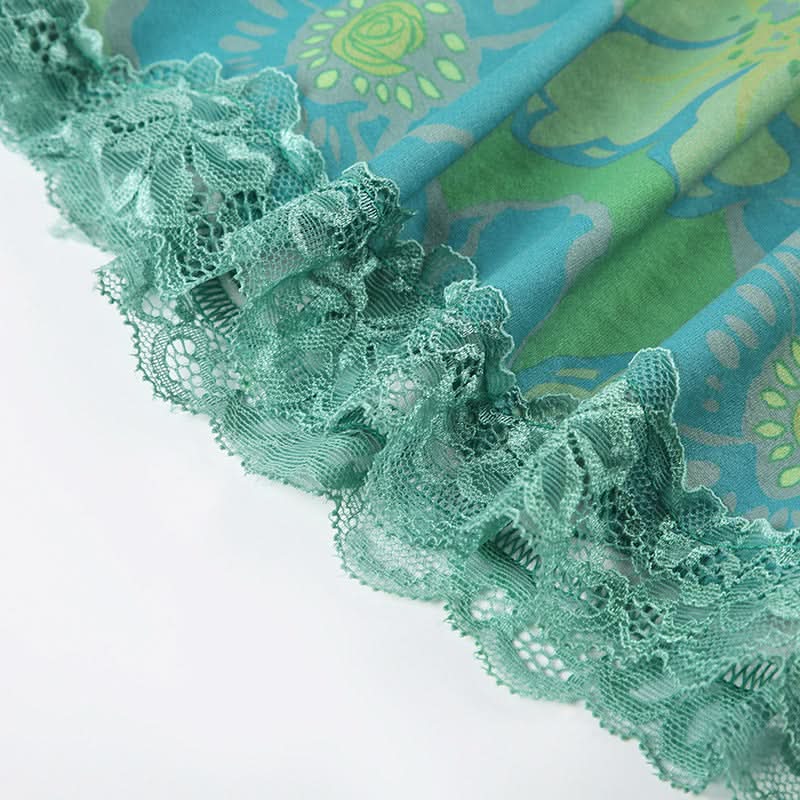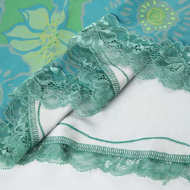 Flower print contrast lace hem cami maxi dress