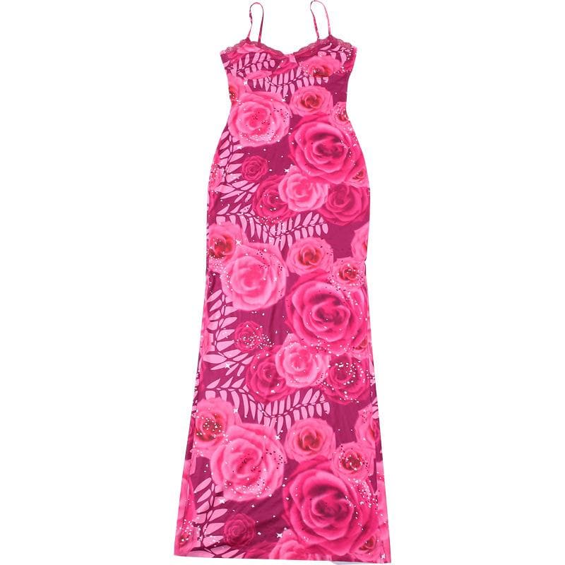 Flower print lace hem cami maxi dress