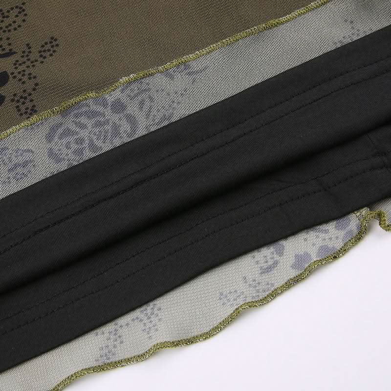 Flower print mesh zip-up cami maxi dress