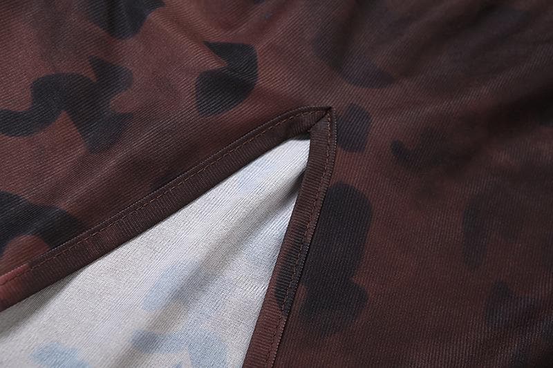 Flower print u neck contrast ruched slit backless cami maxi dress