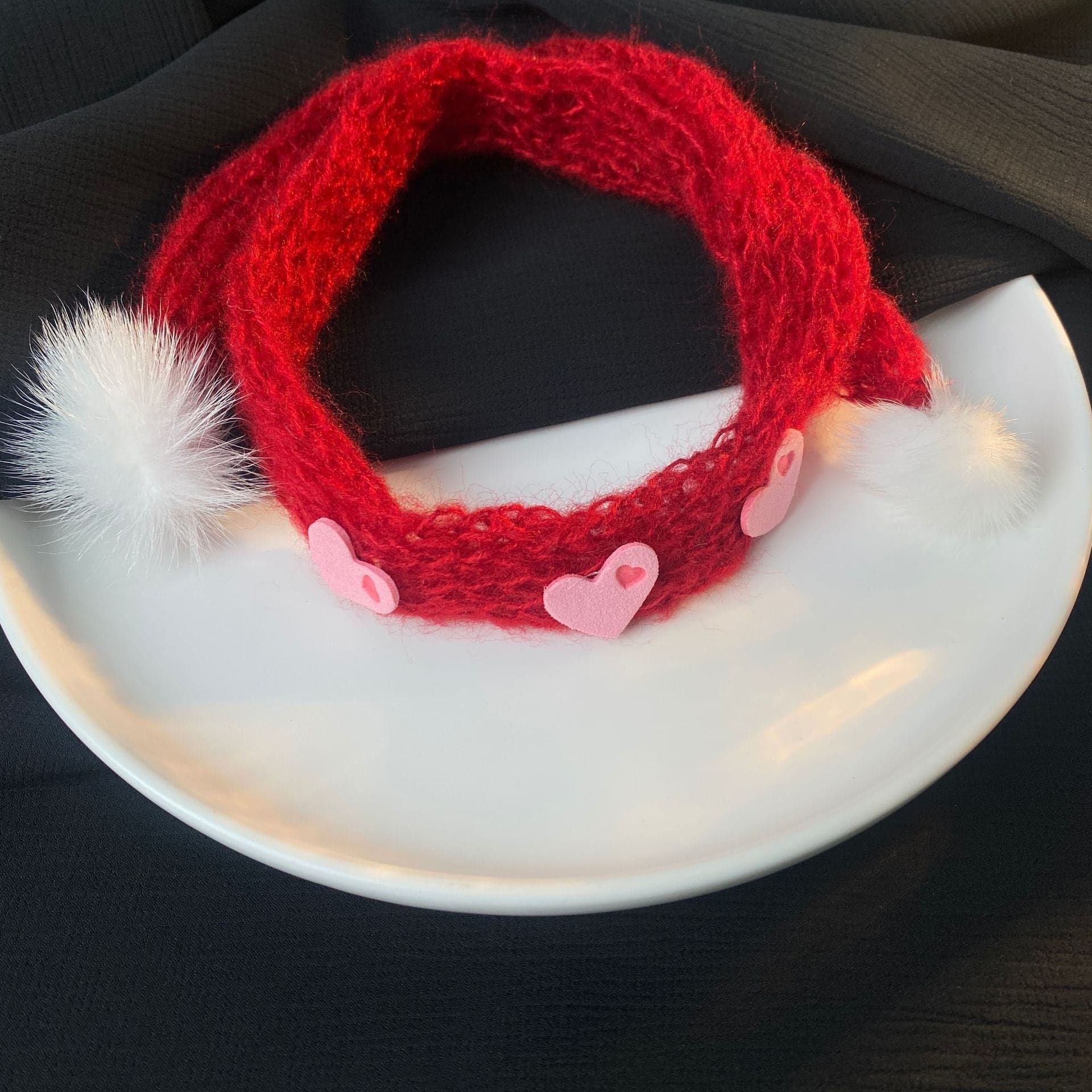 Fluffy knitted heart decor necklace