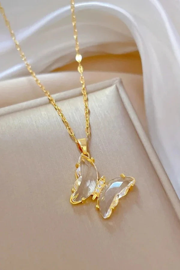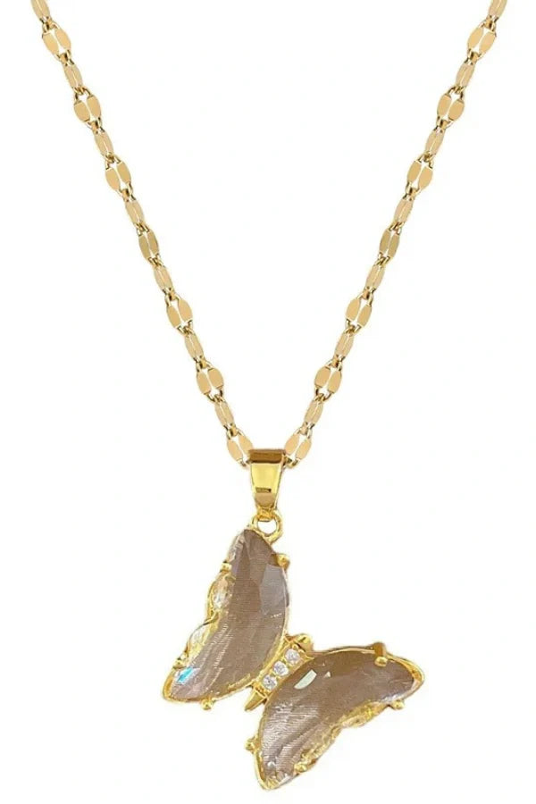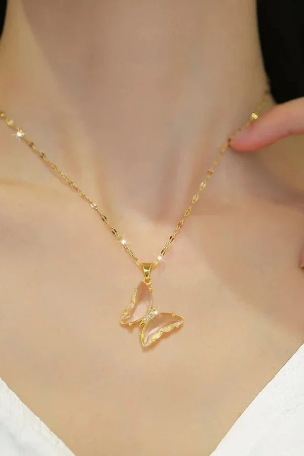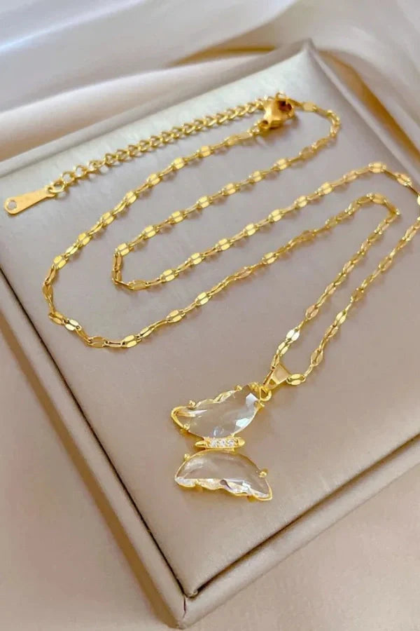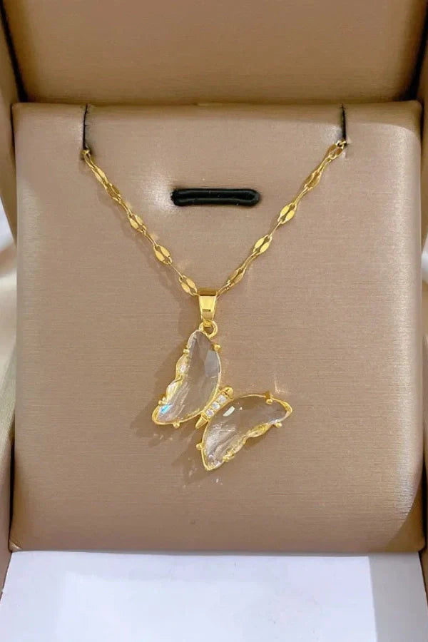 The Fluttera Stainless Steel Butterfly Crystal Pendant Necklace for Women and Girls is a stunning blend of elegance and nature-inspired beauty. Crafted from high-quality stainless steel, this necklace features a delicately designed butterfly pendant adorned with shimmering crystals that add a touch of luxury and sparkle. The graceful wings of the butterfly symbolize transformation and freedom, making this necklace a meaningful accessory for any occasion. Perfect for parties, gifts, or everyday wear, the Fluttera necklace offers a stylish and trendy look that enhances any outfit with its radiant charm.