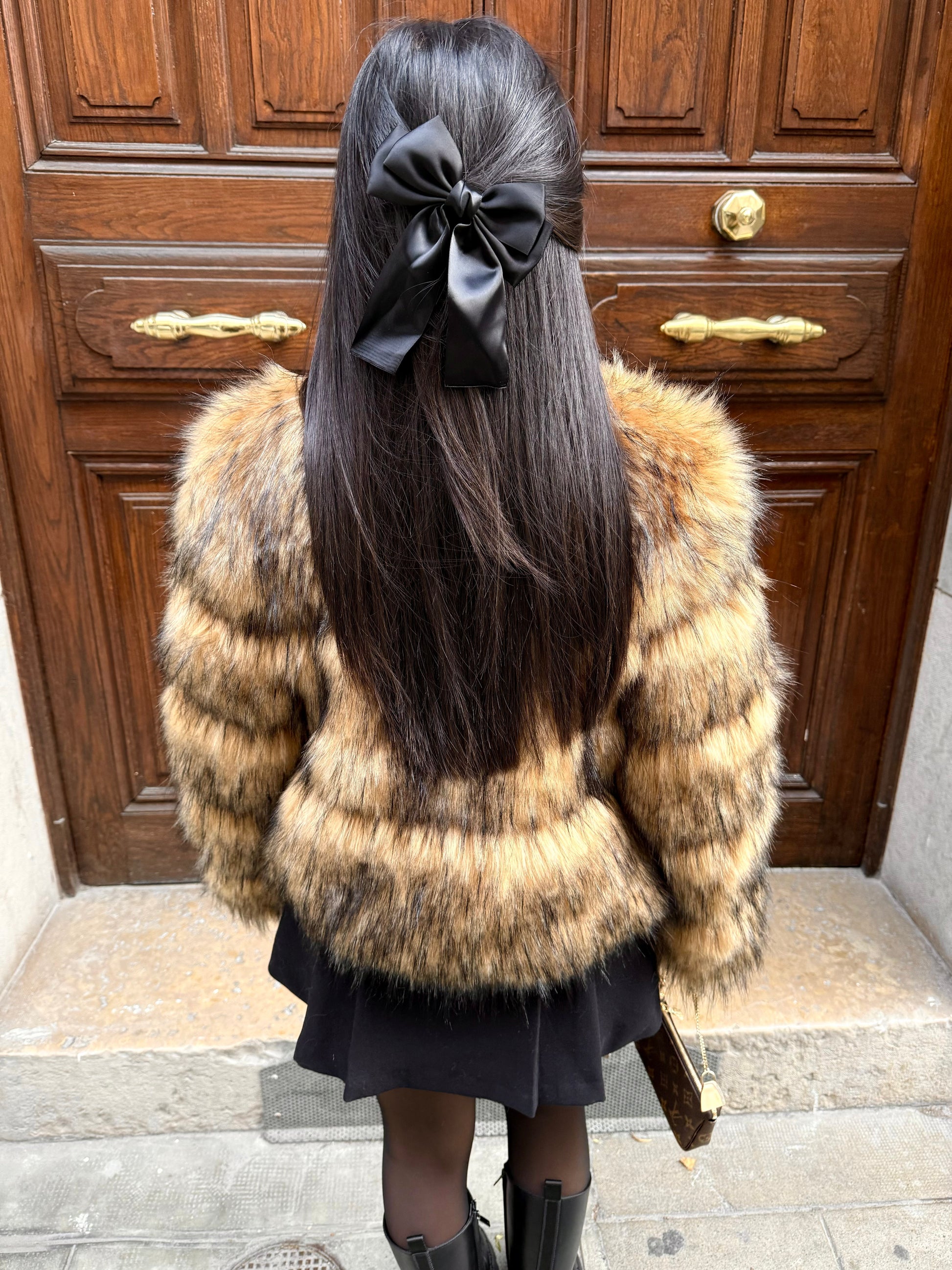 This chic, faux fur-trimmed jacket is perfect for adding a touch of elegance and warmth to any outfit.