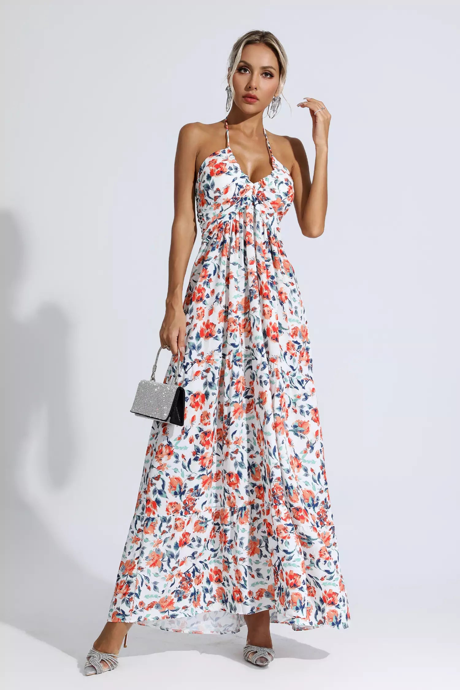 A holiday must-have - Frances Orange Floral Printed Maxi Dress. Wearing this dress will make you look elegant and sophisticated. Its beautiful floral print details will make you stand out. This dress features a halter neckline, ties, an open back and a maxi length that's understated yet stylish. Throw on sandals to complete the look!