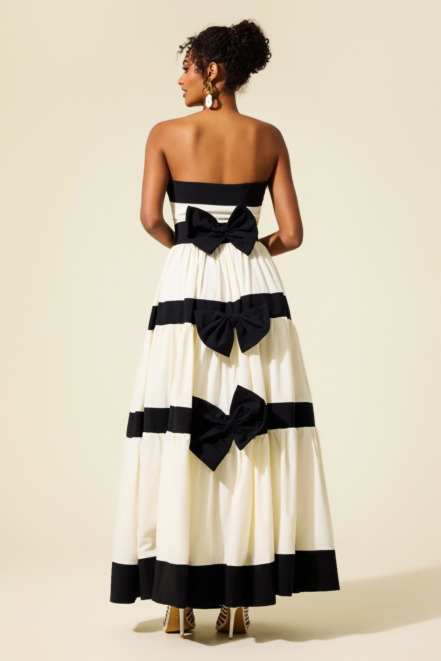 - Frill hem, bow, sleeveless, off-shoulder, soild color