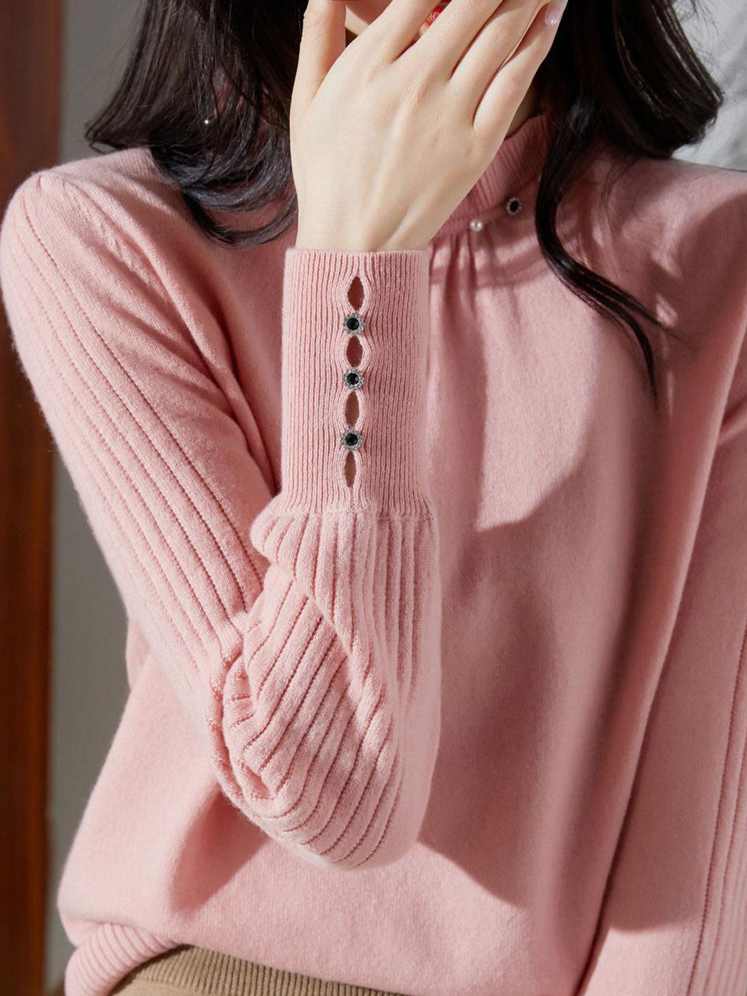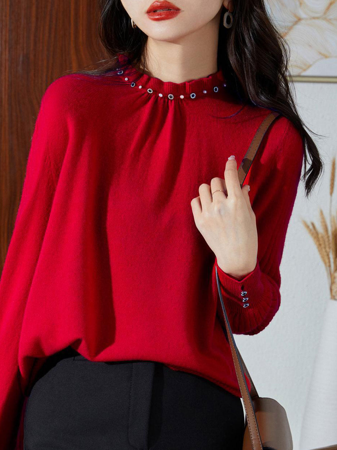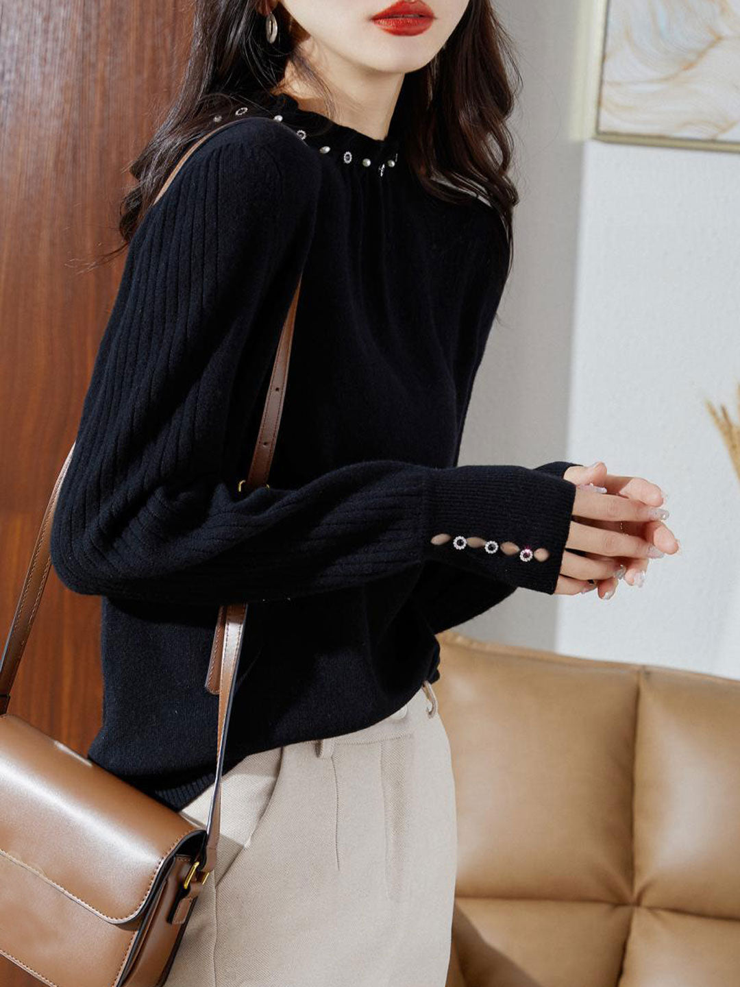 Genesis Elegant Auricular Collar Beaded Knitted Top