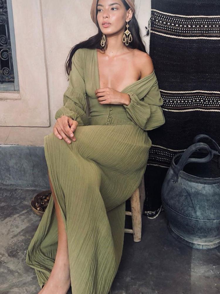 Giselle V-neck Plisse Maxi Milkmaid Dress