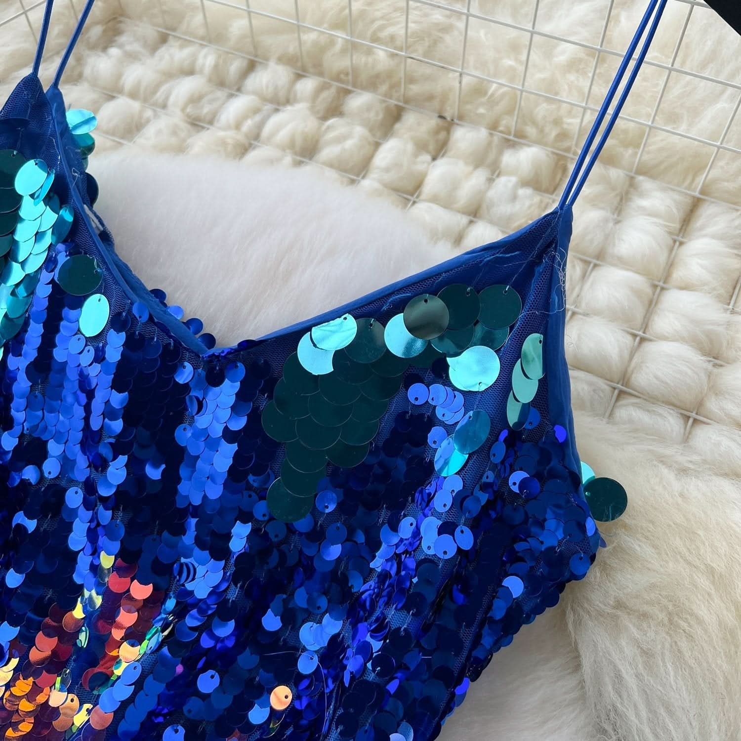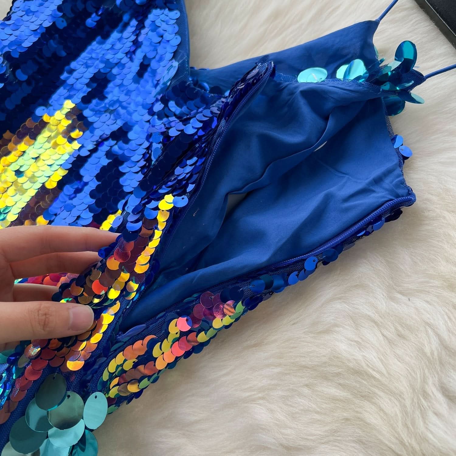 Glitter v neck spaghetti strap zip-up backless mini dress