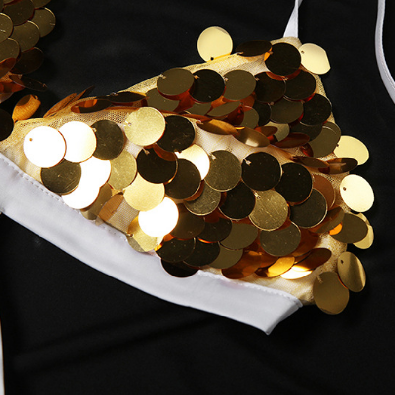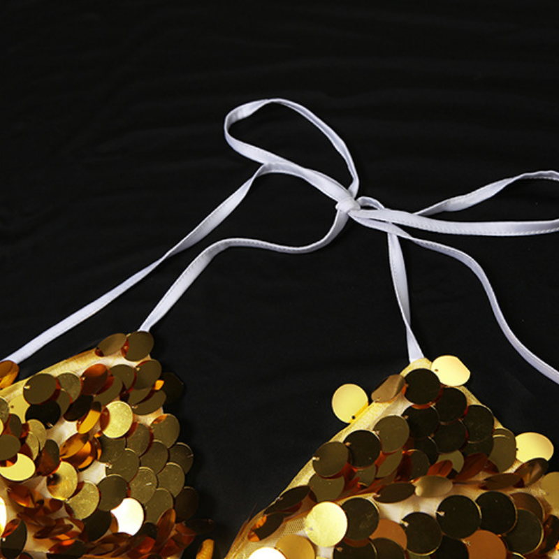 Glitter v neck zip-up halter self tie maxi dress