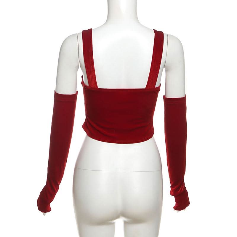 Gloves bowknot lace velvet patchwork cami top-final-sale