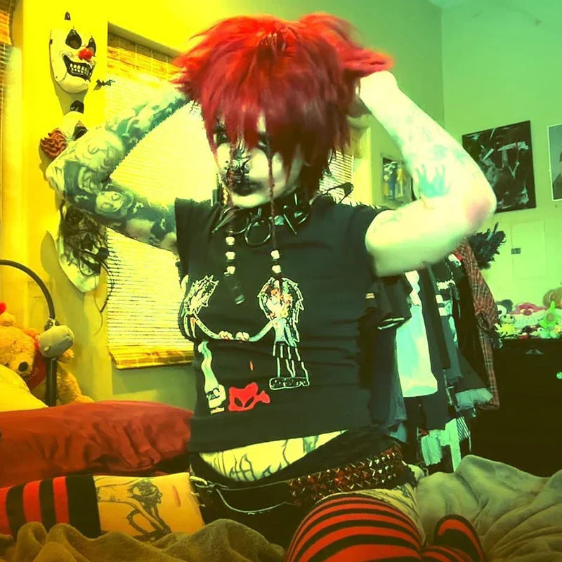 Gothic Printed Cropped Vintage T-shirt