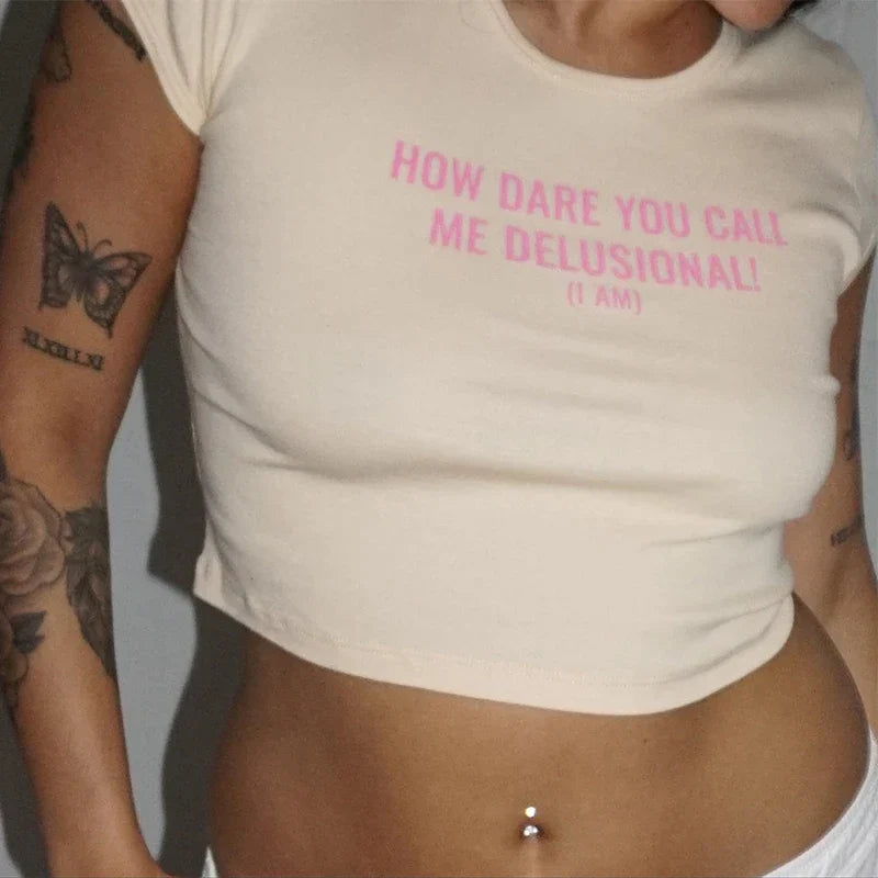Gothic White Letter Print Baby Tee T-shirt