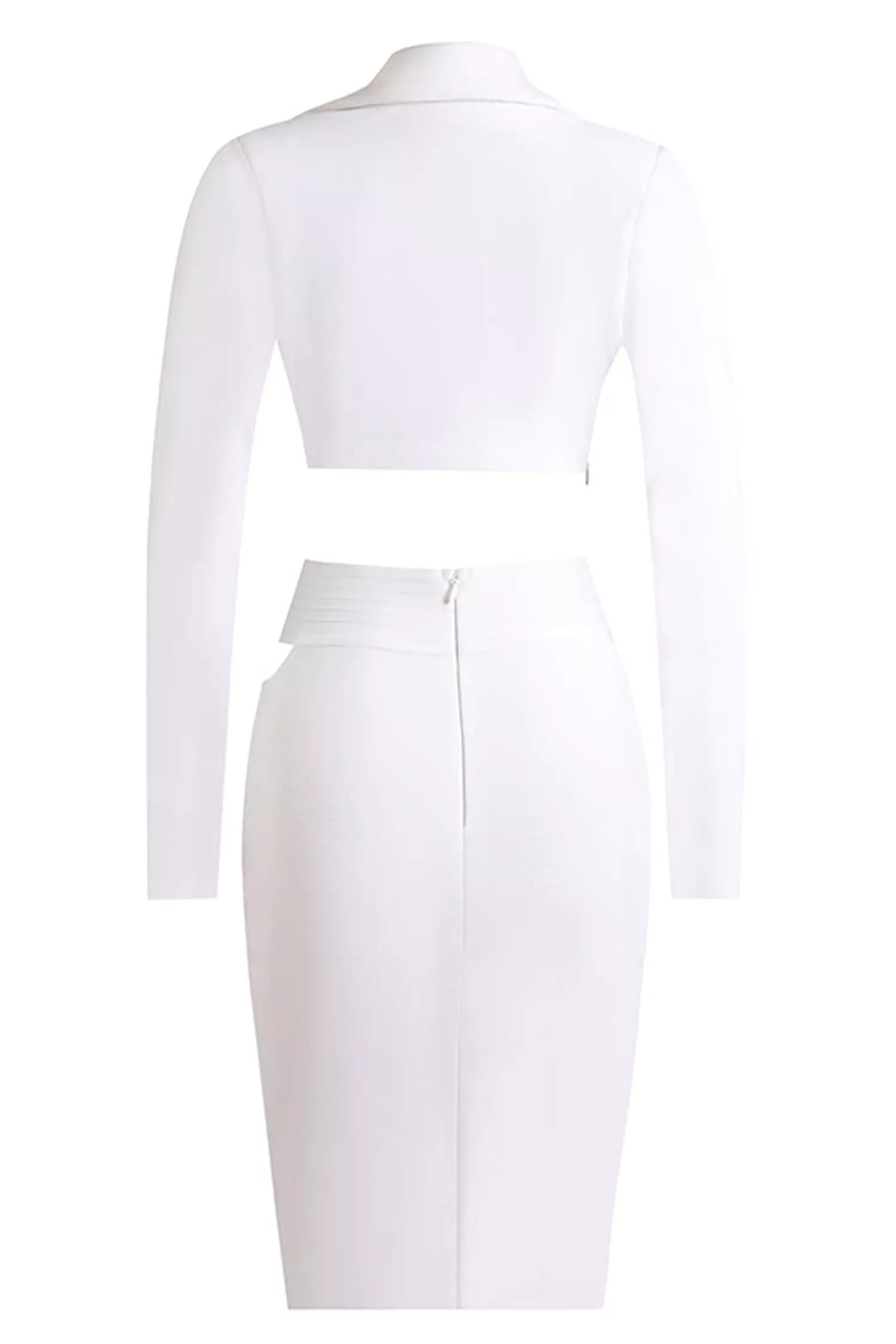 What do you wear to work on Monday? Out of ideas? Then try Gracelynn White OL Blazer Set! V-neck top, paired with a short skirt with tight cross straps, makes you look capable and elegant. The hidden zipper details are the fine workmanship of CATCHALL. Wear it with a handbag and heels for a chic look.