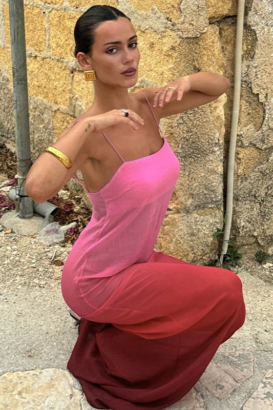 Gradual Print Chiffon Fashion Suspender Maxi Dress