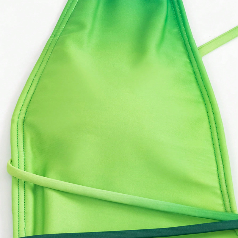 Green Lace Up Mesh Spring Swimsuit Beach Bikini Set