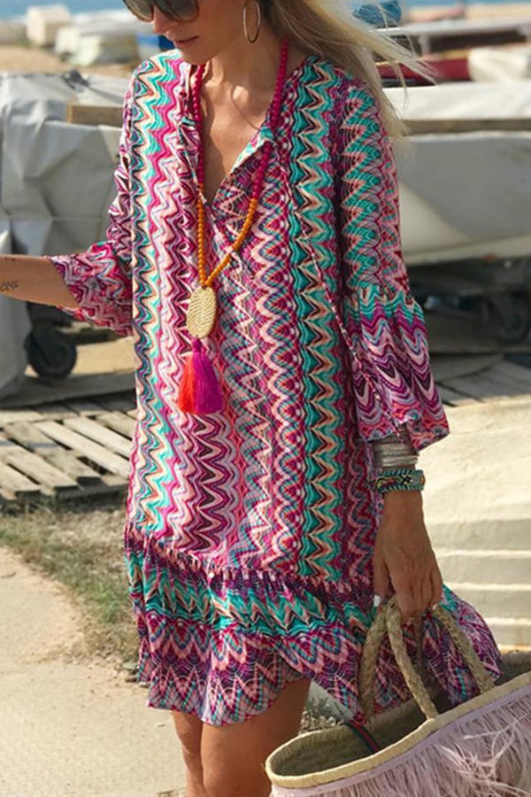 Hailee Colorful Water Ripple Print Casual Beach Mini Dress