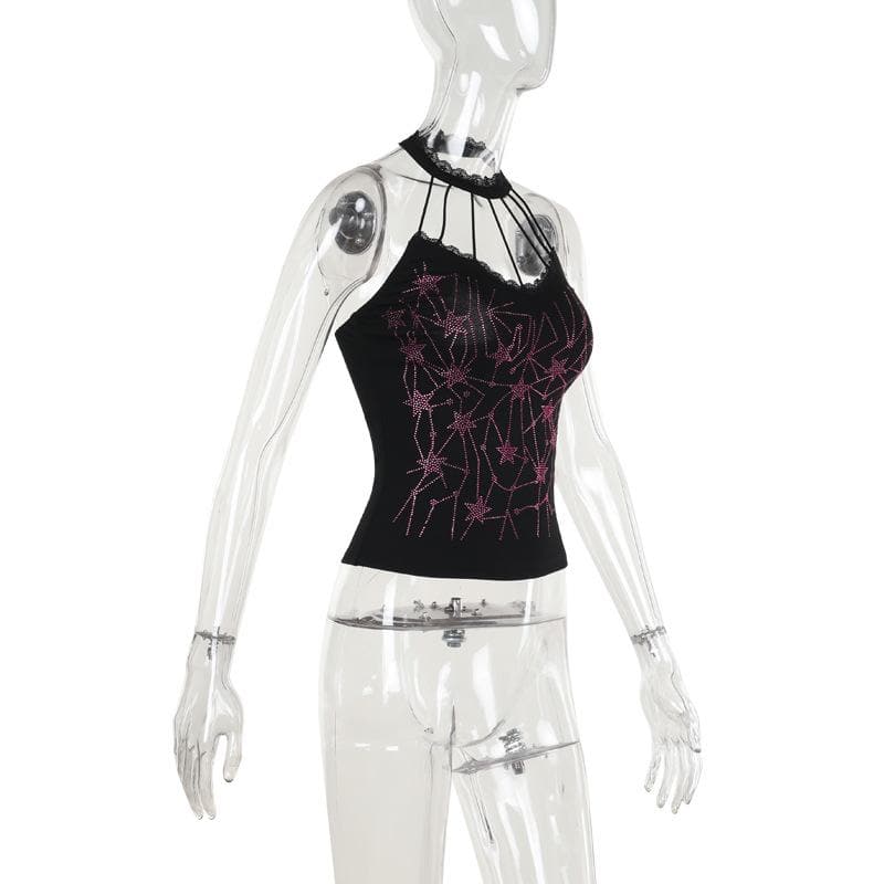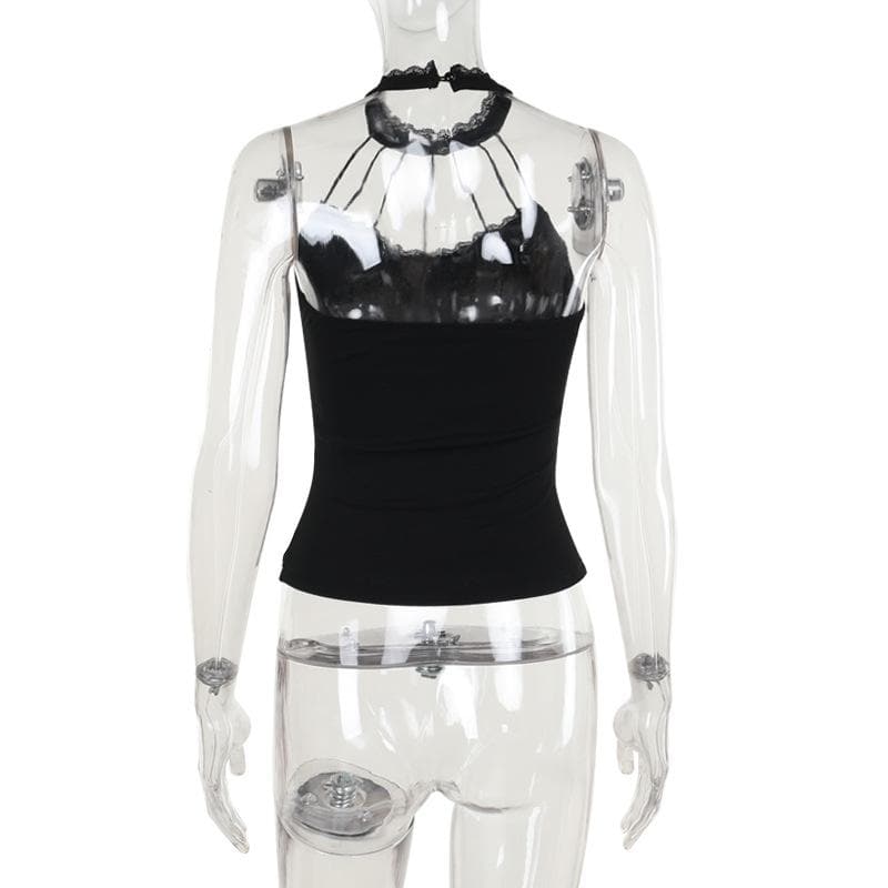 Halter beaded lace hem backless top