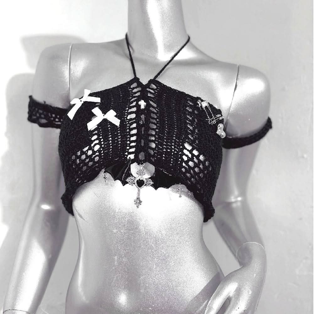 Halter bowknot hollow out knotted tassels mini skirt set