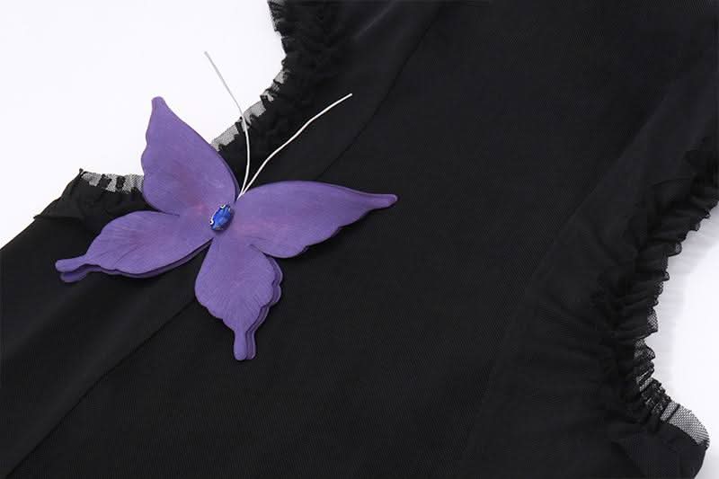 Halter butterfly applique hollow out mesh cut out maxi dress