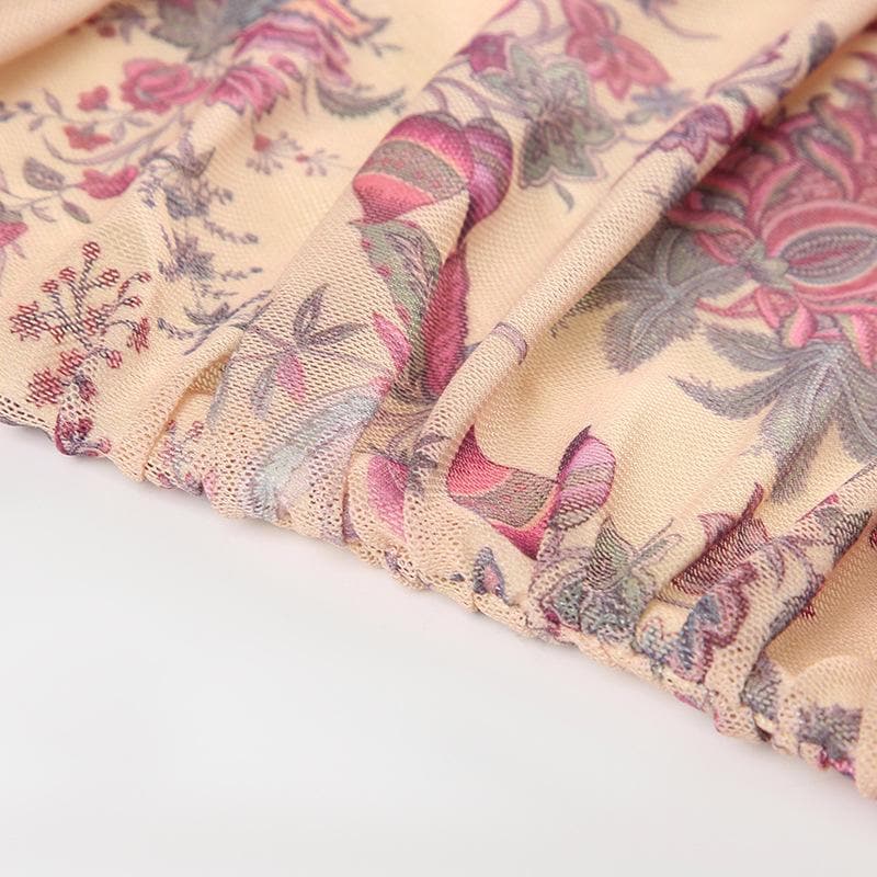 Halter button backless print ruched top