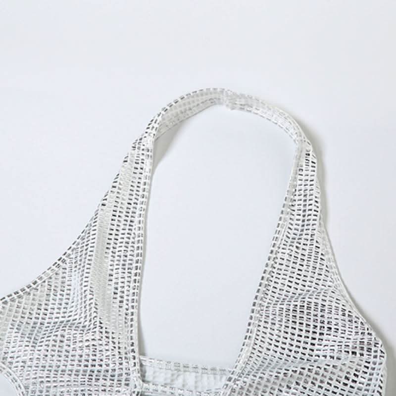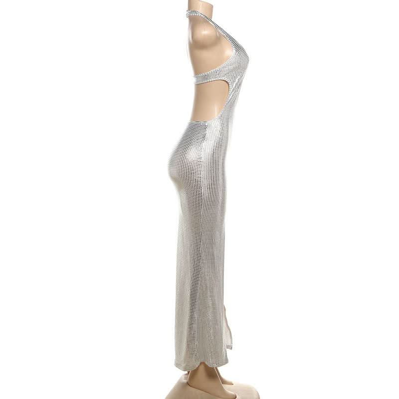 Halter deep V neck slit plaid hollow out cut out maxi dress