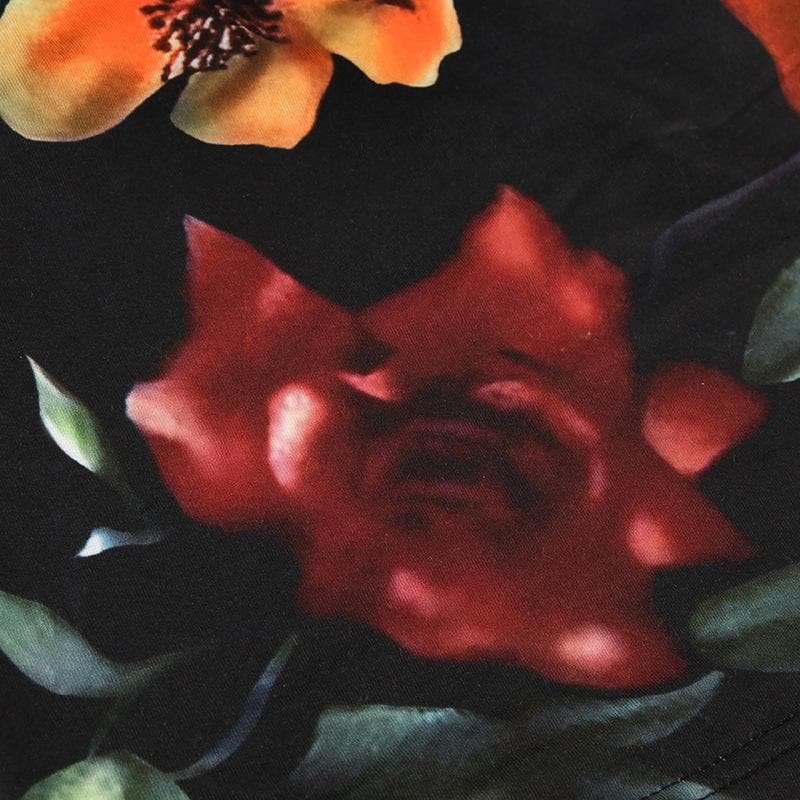 Halter drawstring ruched hollow out flower print cut out top