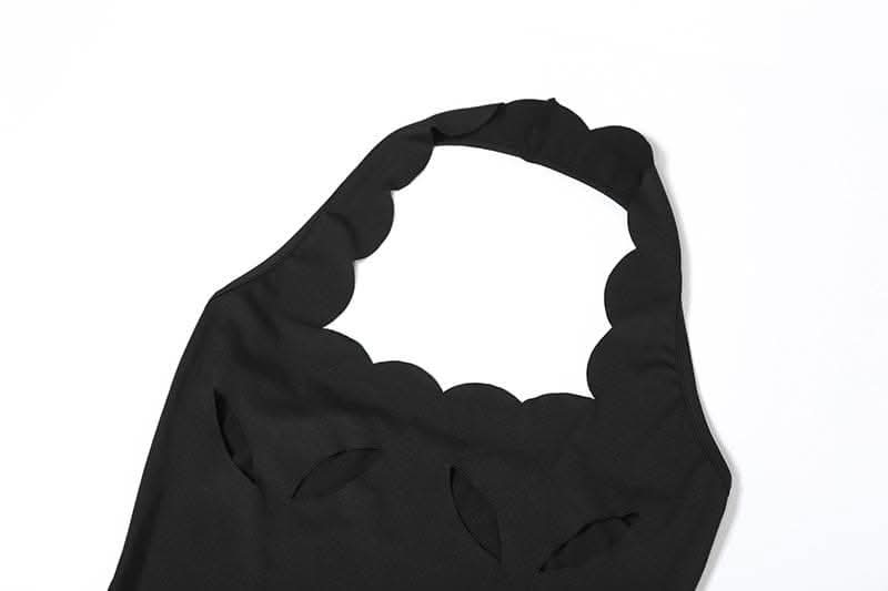 Halter hollow out backless high slit cut out maxi dress-final-sale