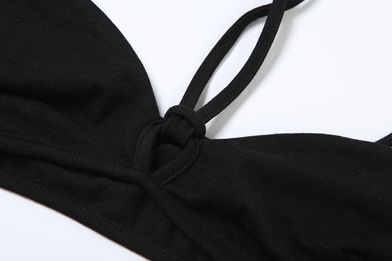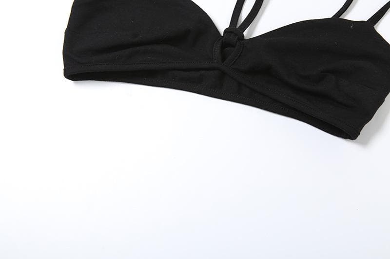 Halter hollow out mesh contrast 2 piece cami cut out top
