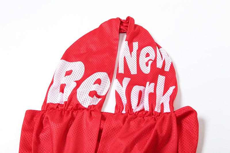 Halter letter print backless contrast mini dress