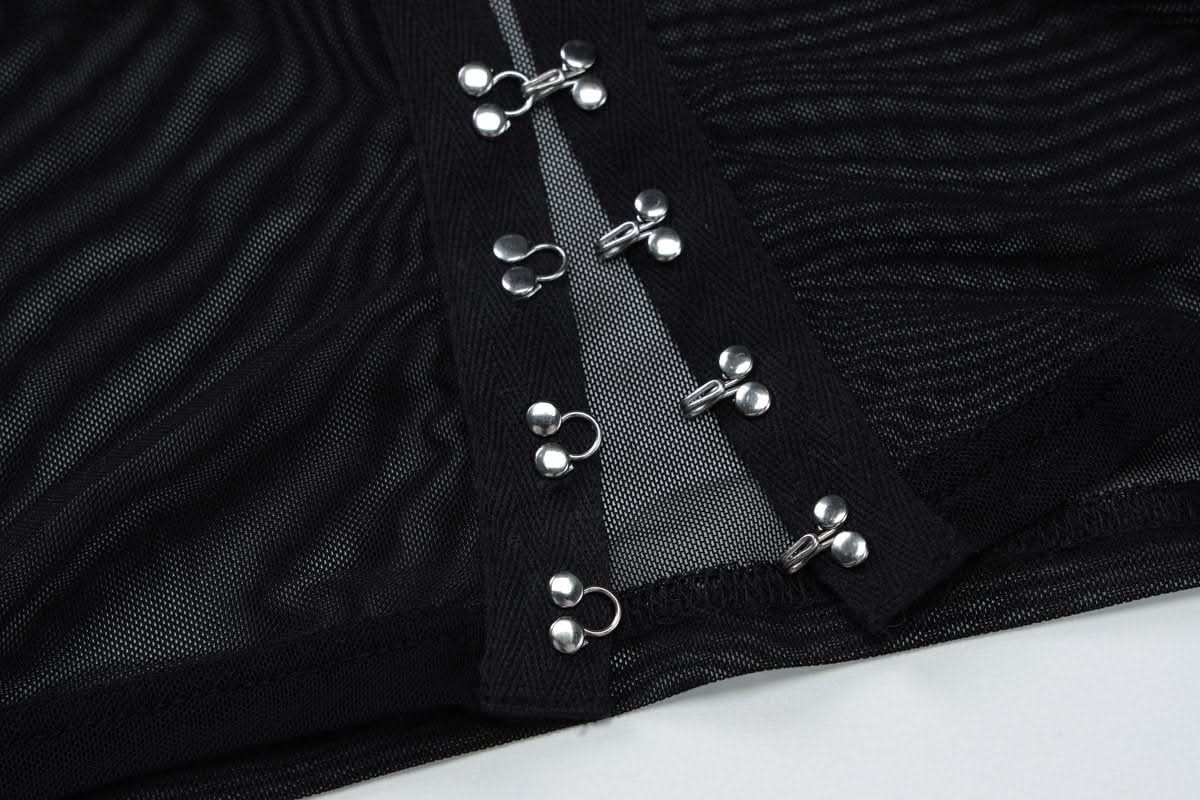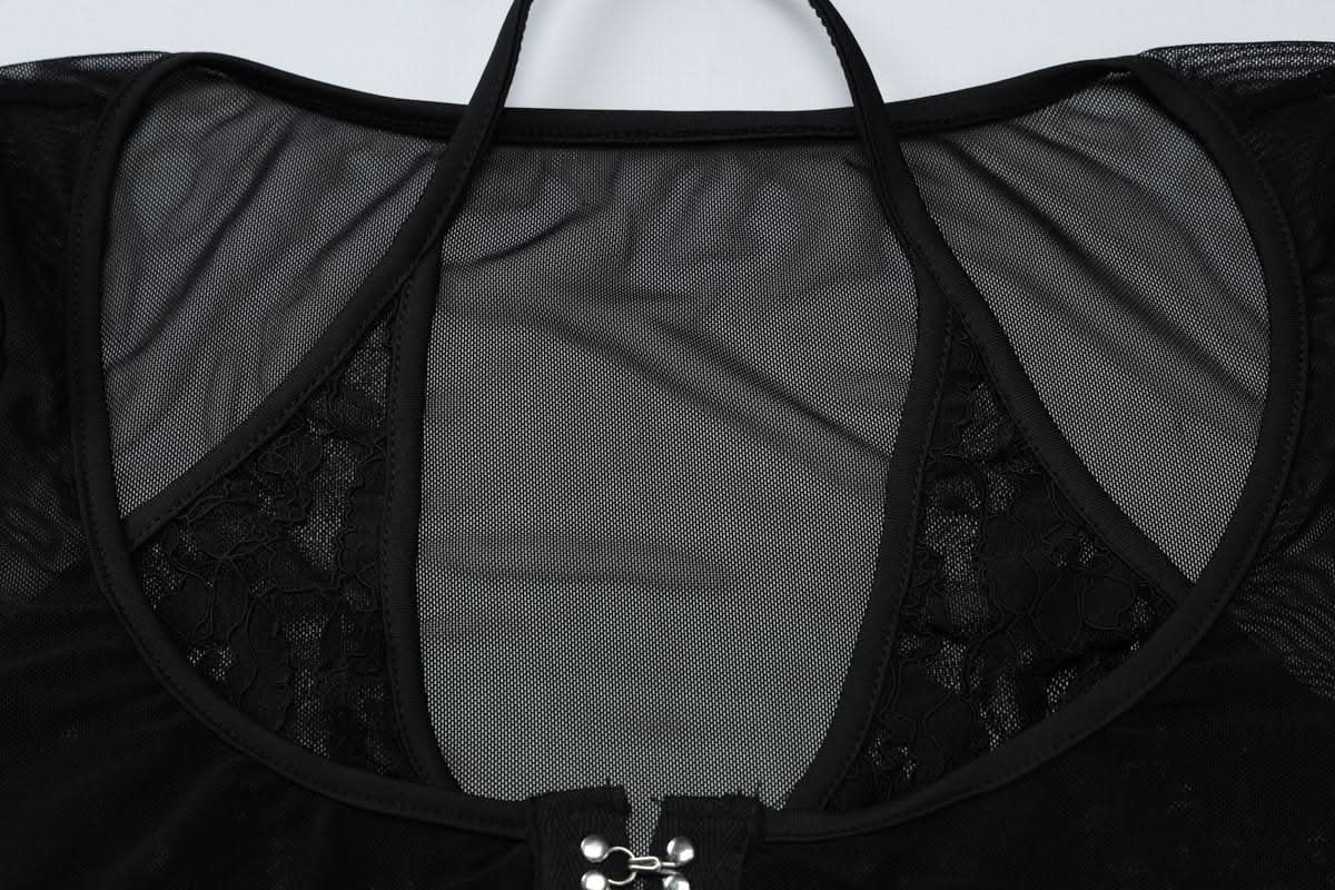 Halter long sleeve mesh lace hem button top