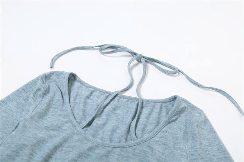 Halter long sleeve self tie beaded top