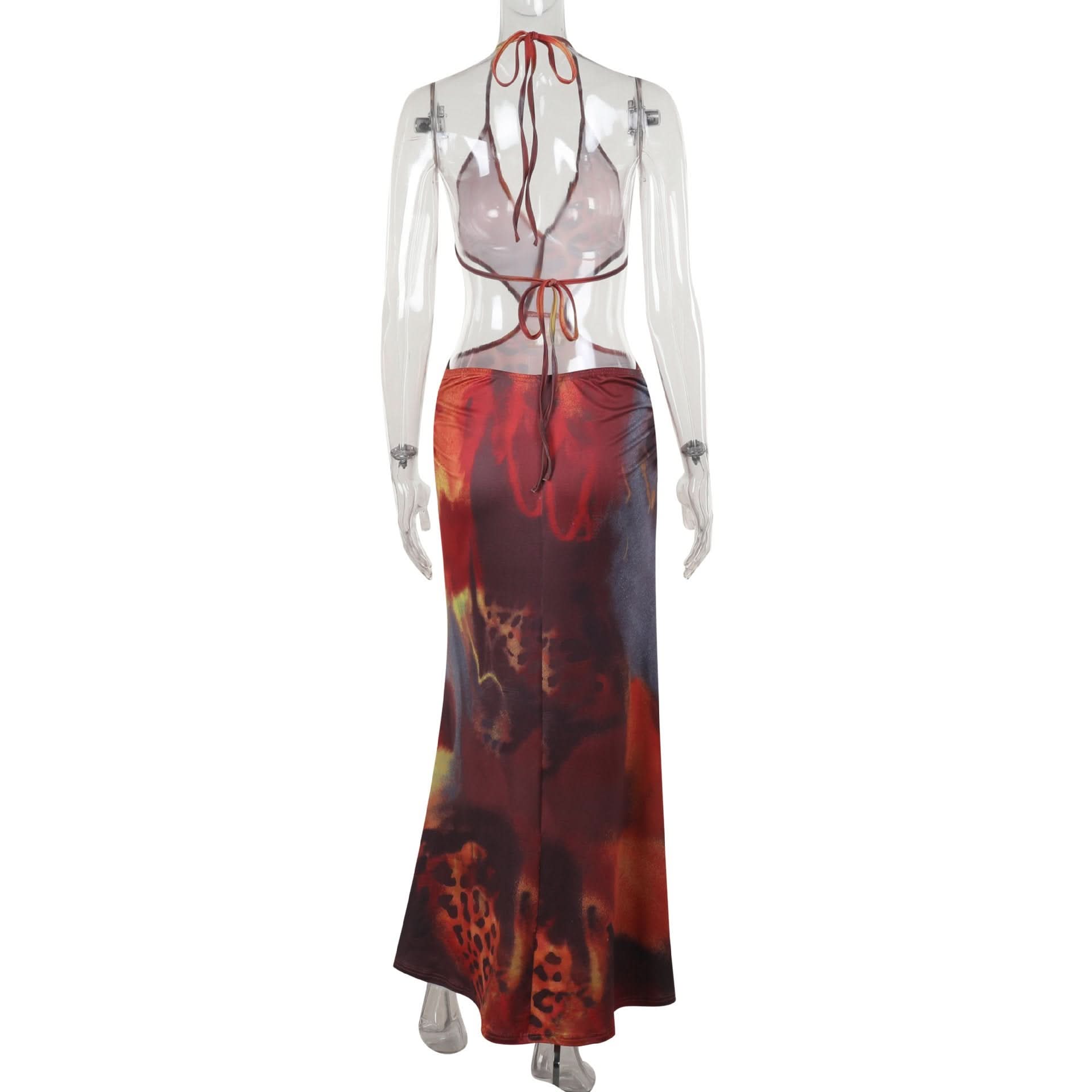 Halter self tie deep V neck leopard print maxi dress