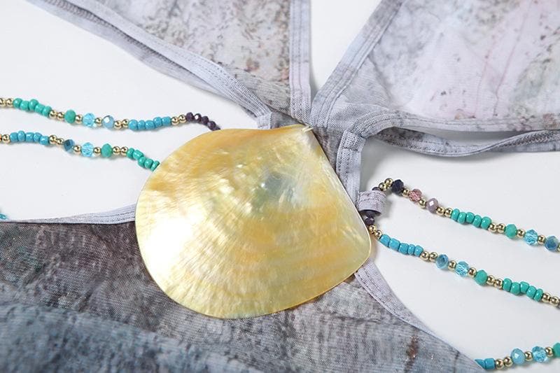Halter self tie deep V neck sheer mesh shell applique maxi dress