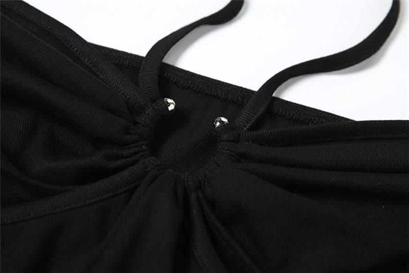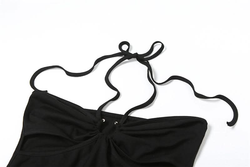 Halter self tie hollow out mesh cut out maxi dress
