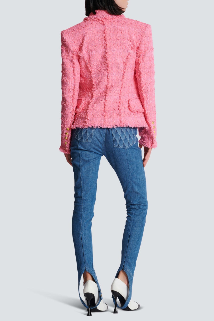 Expertly crafted from high-quality tweed fabric, the Hazel Gold Buttoned Tweed Jacket is a must-have for any fashion-forward individual. With its timeless gold buttons and elegant design, this jacket exudes sophistication and style. Perfect for both formal and casual occasions, it's an essential addition to any wardrobe.
