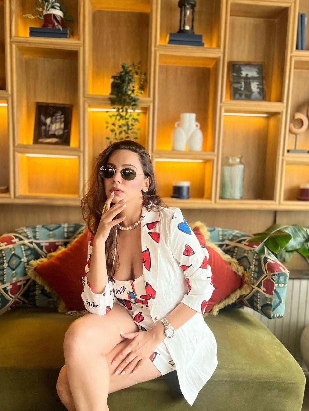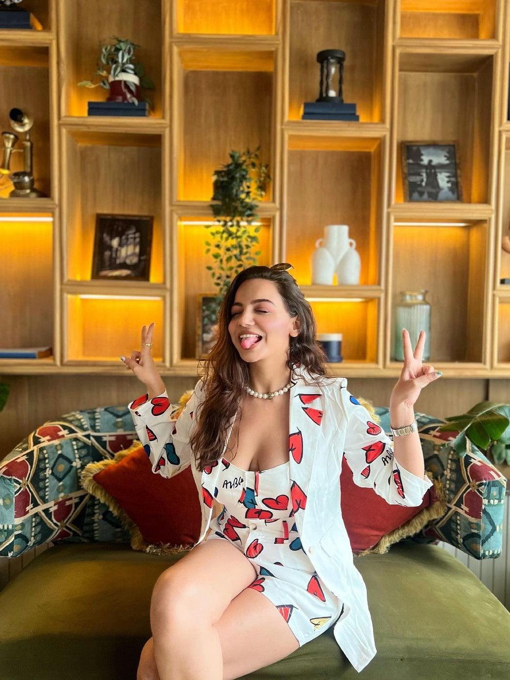 Heart Print Cami Top & Shorts with Long Blazzer Coord Set
