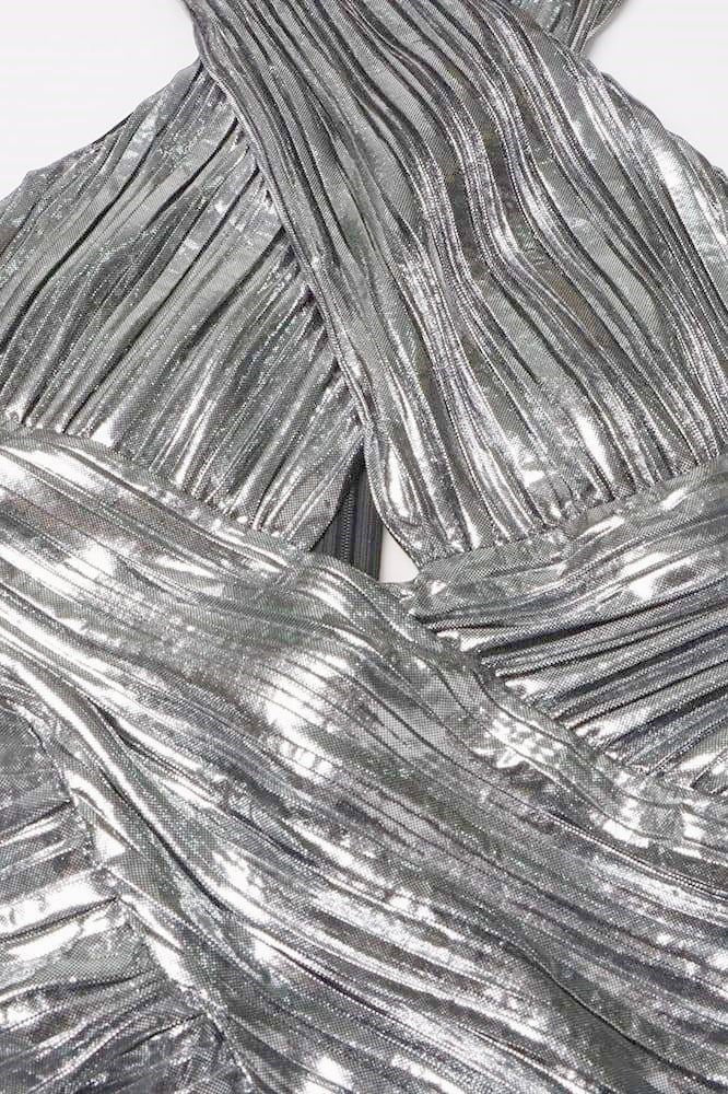 Heloise Metallic Cross Halter Neck Maxi Dress