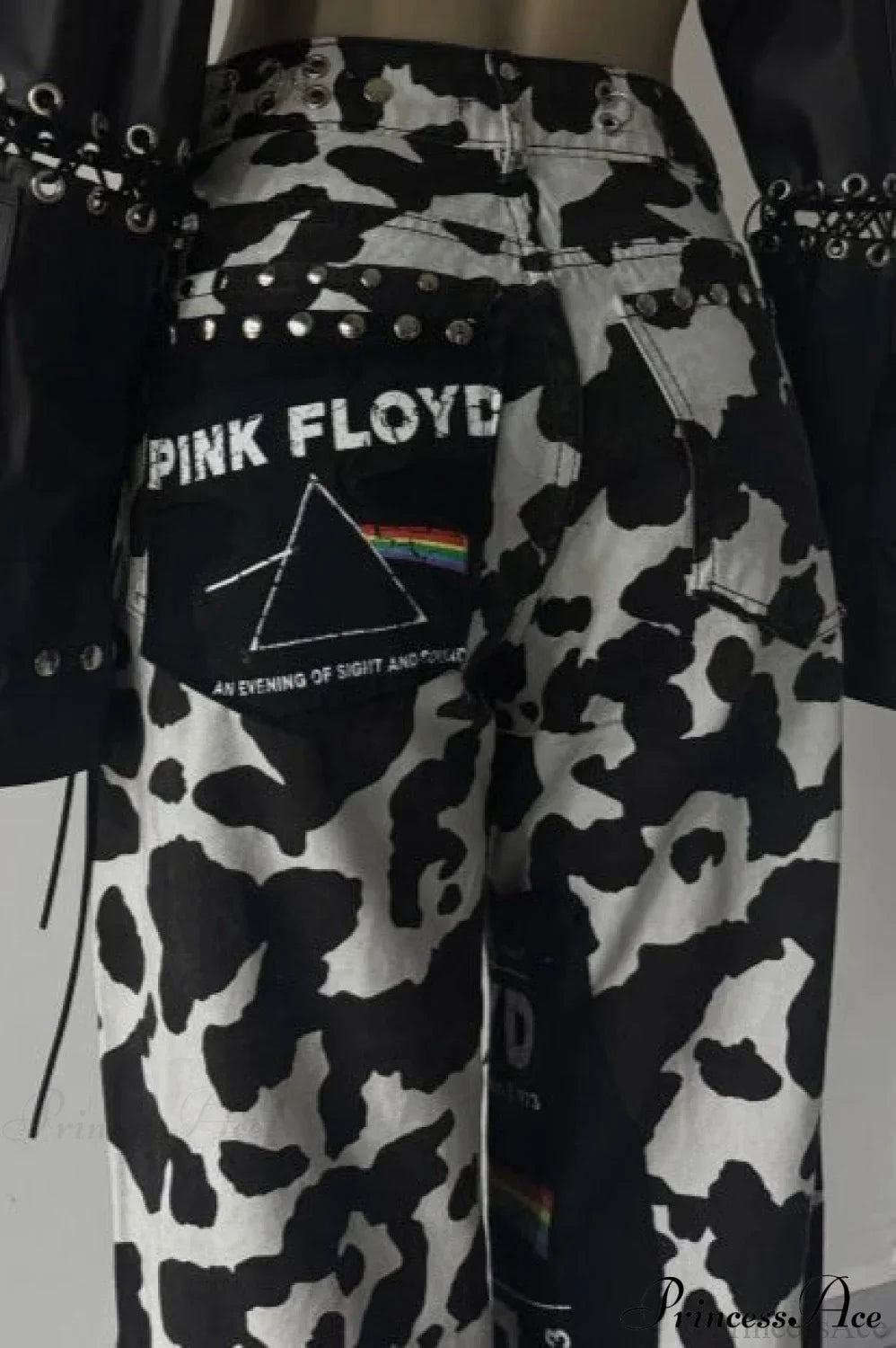 High Waist Straight Leg Milk Pattern Tassel Pants