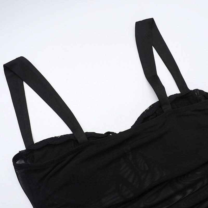 Hollow out mesh ruched cami cut out maxi dress