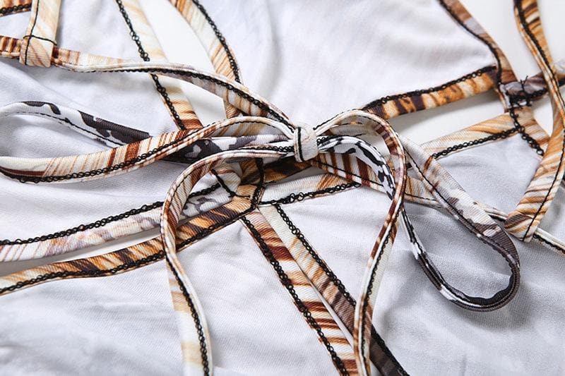 Hollow out snakeskin print halter self tie cut out maxi dress
