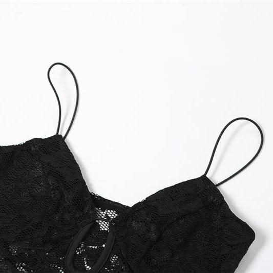 Hollow out v neck lace slit spaghetti strap cut out maxi dress