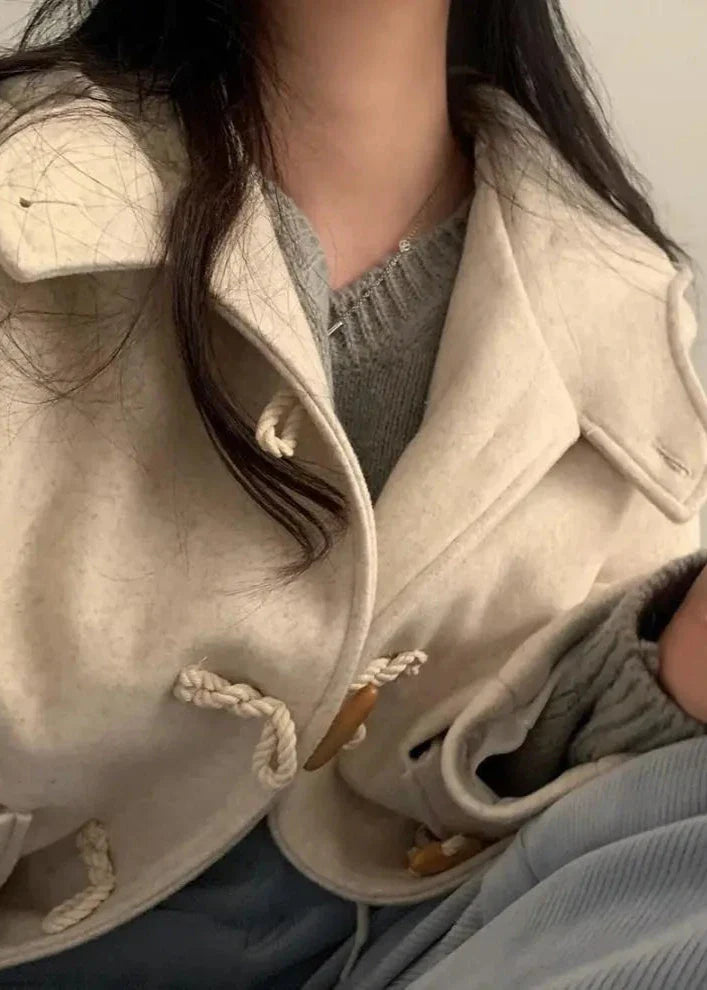 Stay cozy and stylish with this versatile horn button woolen hooded coat. Featuring a loose fit and large pockets, this short coat is perfect for layering during the colder months. The classic horn button detailing adds a touch of charm, while the hood offers extra warmth. Ideal for casual outfits, this woolen coat is both practical and chic, making it a must-have addition to your fall and winter wardrobe.