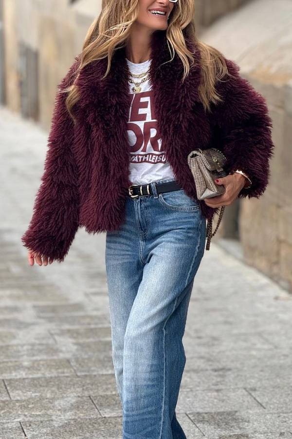 Spectacular quality of this extra soft and abundant faux fur coat. Very warm. Lined inside. With side pockets and front clip for closure. Large flaps.