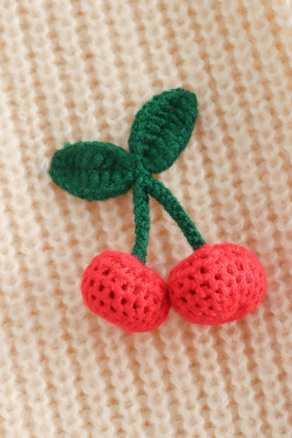 The pretty V-neck cardigan with cherry decorations combines playful design with comfort. Featuring charming cherry decorations and a flattering V-neck, this cardigan adds a fun and unique touch to any outfit. Its soft, comfortable fabric and button-down style make it perfect for layering in cooler weather.