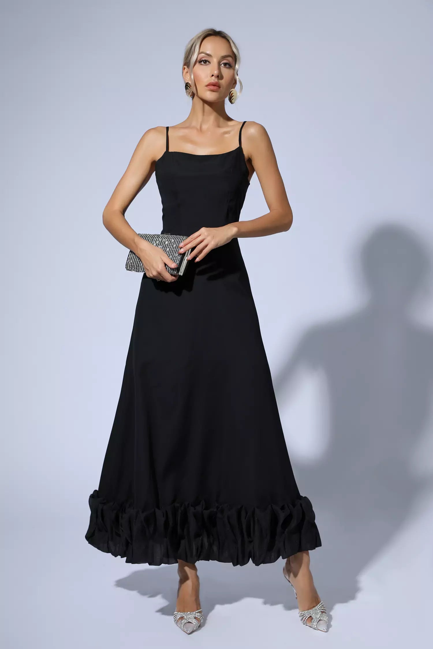 Get ready to turn heads in the stunning Izabella Black A-line Maxi Dress! Crafted from premium, comfortable fabric, this dress is designed to accentuate your curves and hug your body in all the right places. The A-line skirt adds elegance, and the strappy dress adds just the right amount of flirtatiousness. In classic understated black, all you need is pumps and statement earrings for a chic look.