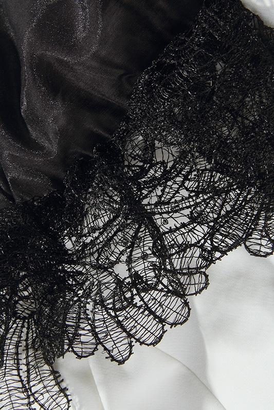 - V-neck, Double Breasted, High Slit, Padded Shoulder, Flap Pockets, 3D Embroidered Lace Decoration.