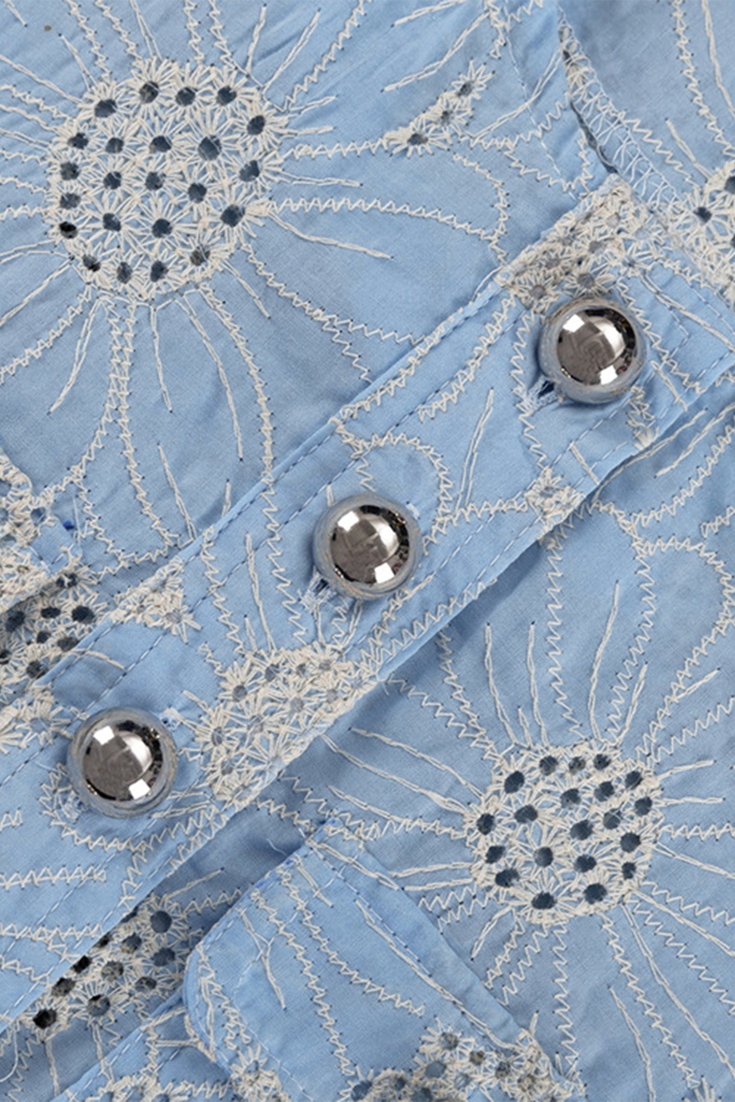 Floral Lace Pattern, Round Neck, Puff Sleeves.