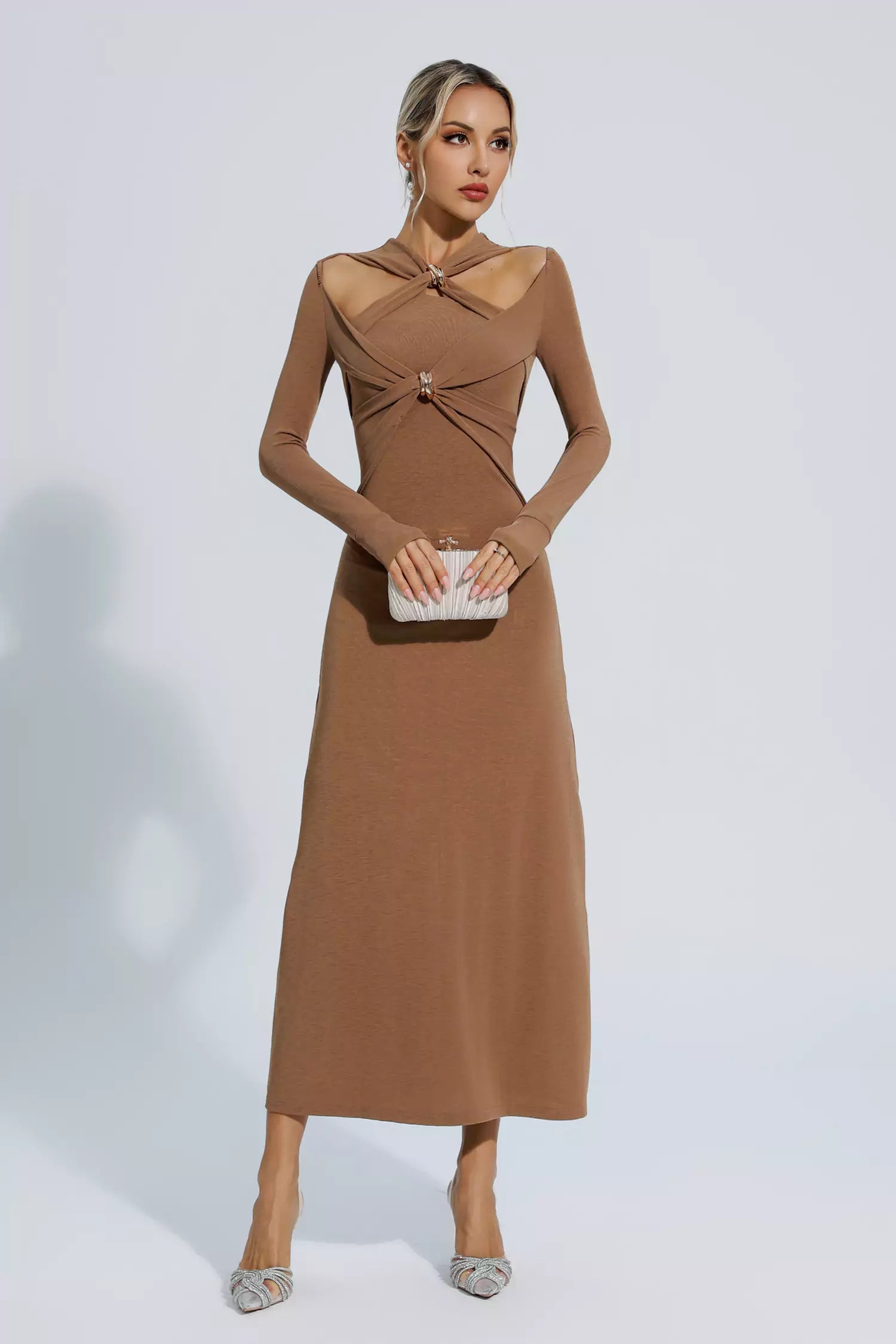 Kendra Brown Knit Long Sleeve Maxi Dress